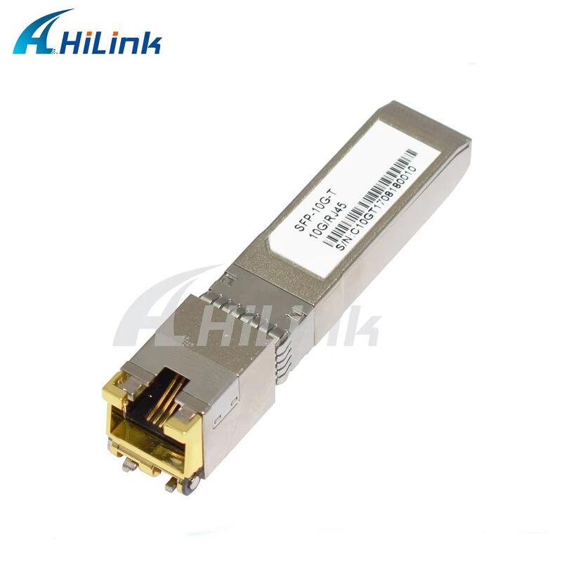 Die SFP+-10GBASE-T Kupfer-Smalform-Pluggable (SFP) -Transceiver basieren auf der SFP-Multi-Source-Vereinbarung (MSA).5Gbase-T / 1000base-T-Standards gemäß IEEE Std 802.3. SFP+-10GBASE-T verwendet den RX_LOS-Pin des SFP für die Anzeige der Verbindung. Wenn der TX_DISABLE-Pin des SFP angezeigt wird, wird der PHY IC zurückgesetzt.